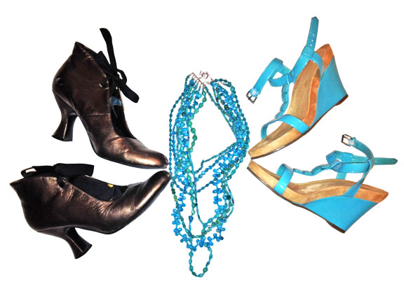 Digressing for a moment: I’ve had the theory for a long time that if I consistently buy (or make) clothes in colors that I’m really in love with, I will have no trouble at all finding things in my closet for the new ones to pair with. And this Santa Fe wardrobe project proves my point— look how many things I found, all purchased over a period of at least a few years, and yet work perfectly with my just-created color palette! (I guess it helps that I love aqua, teal, green, and metallic colors.) So if your wardrobe is more what-was-I-thinking than ooh-can’t-wait-to-get-dressed, try this: pull out only the items you are madly in love with. Then look at how many things are left. The ones you pulled out are most likely the most compatible with your intrinsic taste, and therefore most likely to express your personal style. (And isn’t that what fashion is all about?)