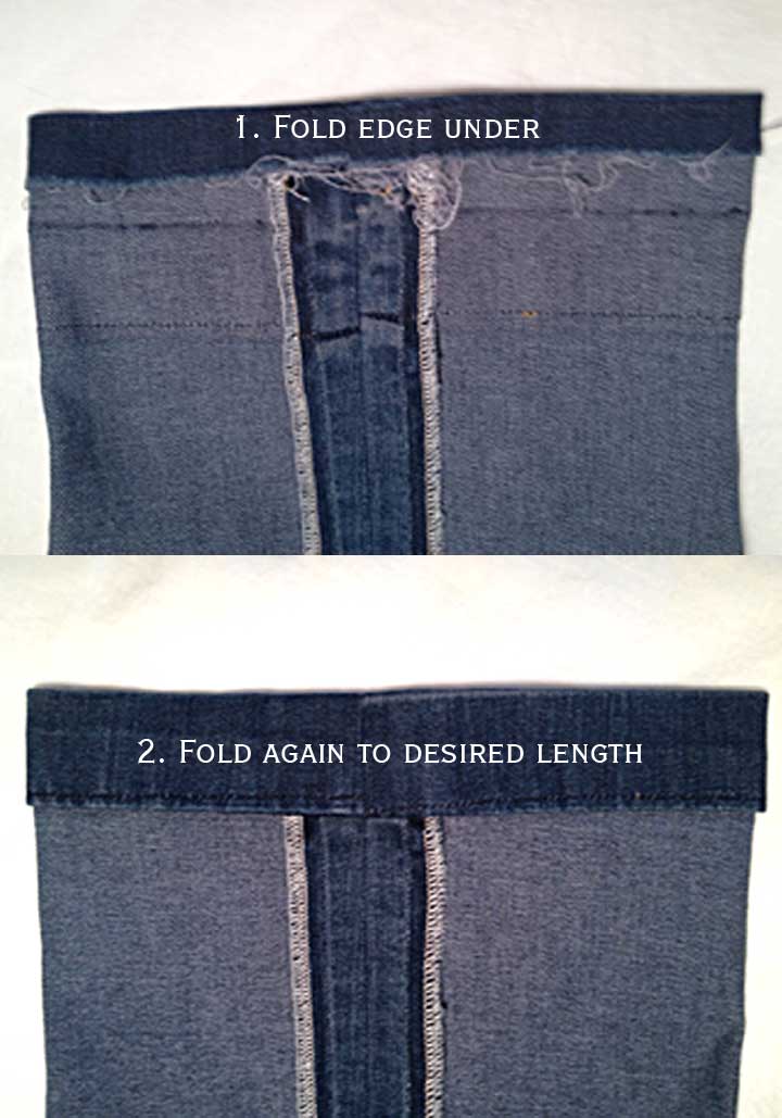 Another hem tip: If your denim is too heavy for your sewing machine to easily sew through 3 layers (in the typical jeans hem), try this: trim off the part that was turned under on the original hem, usually about 1/2″; serge (or zigzag-stitch) the new raw edge, fold and press the hemline in place, then stitch. This way, you’re only sewing through 2 layers of denim.