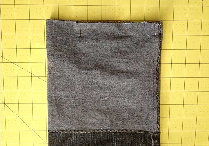 Here’s one cuff pinned in place for sewing onto the jeans: