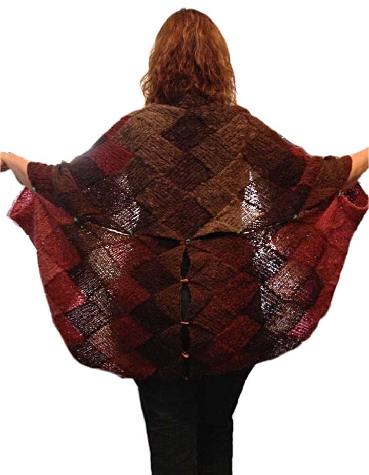 My finished Cocoon from the back. In a different fiber, silk, for example, the same-size Cocoon would have a completely different drape. Start pinning those underused scarves together and see what works!