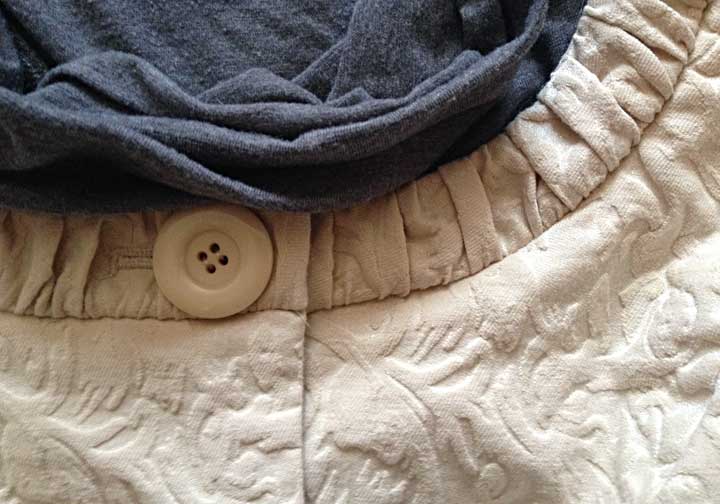 The ivory jacket looks a little boxy in this photo, but it’s actually quite close-fitting through the waist, which works beautifully with the slim fit of the top of my skirt. Oh, and I have to show you a detail of this jacket: