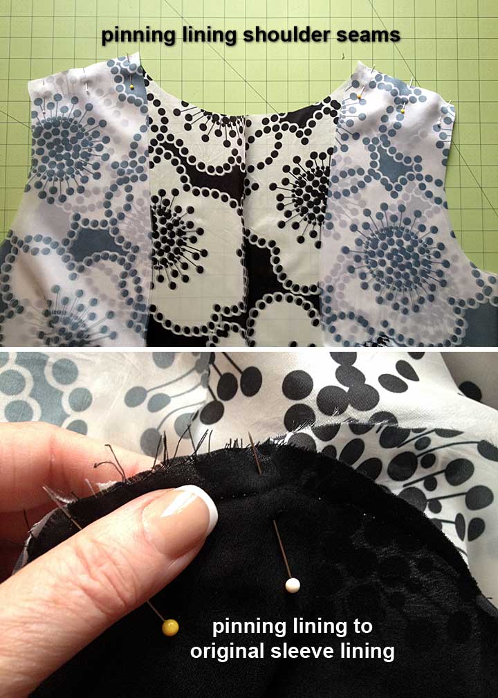 All I have to do is sew the shoulder seams in the new lining, attach it to the existing sleeve linings, then attach it around the front/neck edges.