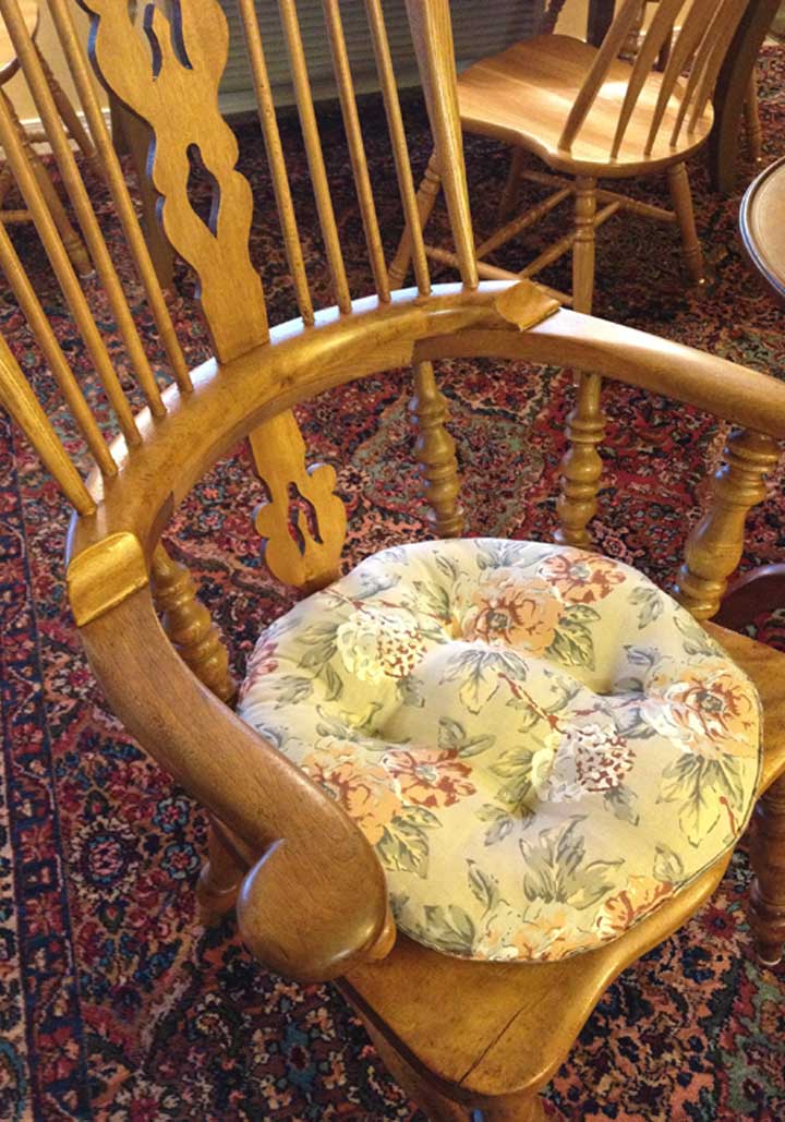 In addition to the pillows for the couch, Mom was hoping I’d have time to make a new cover for this seat cushion: