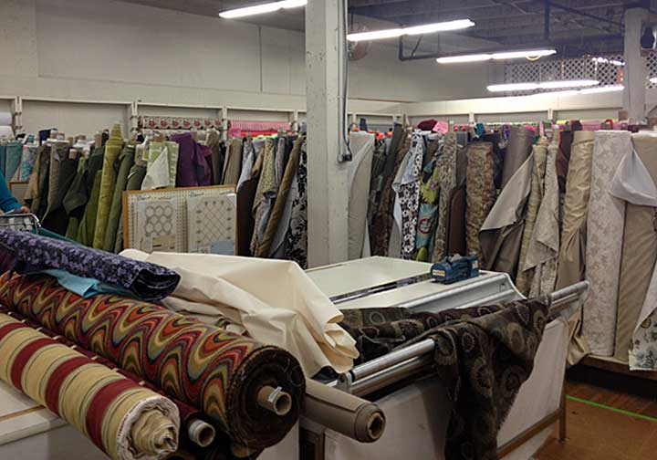 Inside, it’s a bit warehouse-y, but I found it very well-organized, and I also have to say I was deeply impressed with their well-thought-out merchandise mix. For example, since I use invisible zippers a lot in garments, I’ve gotten used to the limited selection of both colors and sizes in typical fabric stores. But when I went to find all the invisible zippers I’d need for the new pillow covers, I was blown away by the color and size range being offered. (Wish I’d thought to get a picture of them!) Also, their decorator fabrics were grouped according to color families, making it easier to coordinate: